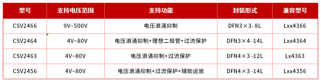 为此,锴威特重磅推出了具备以下四个核心功能的浪涌抑制器芯片csv2464: