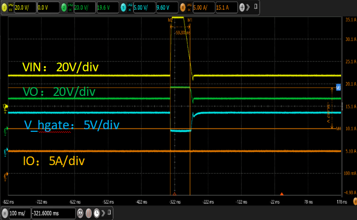 结论:浪涌时间线大于50ms,满足安全工作区域范围内。